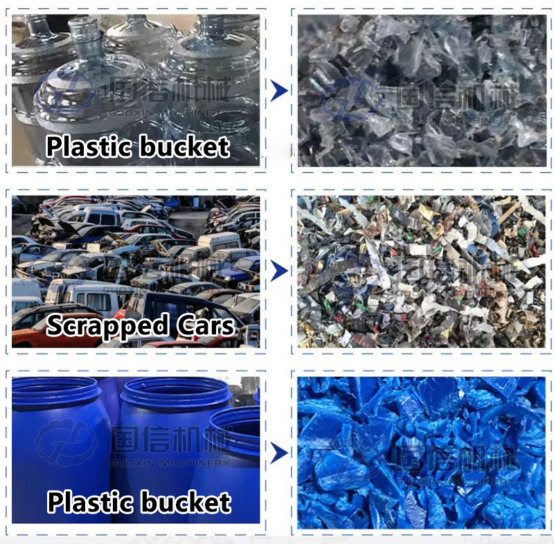 Peralatan lini produksi pengolahan daur ulang penghancur plastik terutama digunakan untuk menghancurkan produk dan material plastik polietilen densitas tinggi (HDPE), yang bermanfaat untuk daur ulang plastik dan produksi partikel plastik daur ulang. Contohnya botol air mineral, botol PET, botol minyak, botol bensin, botol plastik, kantong plastik, lembaran plastik, kotak plastik, dll.